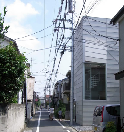 東京の一角に、突如として不思議なたたずまいの建物が見えてきました。外からは螺旋階段(螺旋階段)をのぞくことができます。