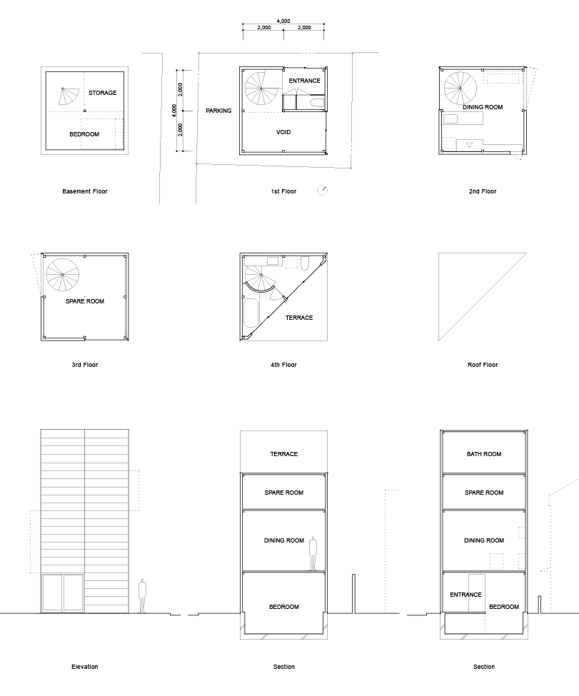 今回は、東京にあるスモールハウスのご紹介です。東京の一角にある、狭い土地を最大限に活用した、地下1階、地上4階建ての建築物です。