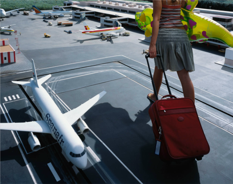 進撃の巨人が大きなキャリーバッグを持っています。これから旅行に出かけるのでしょうが、巨人がのれるような飛行機はなく、このまま歩いていくようです。