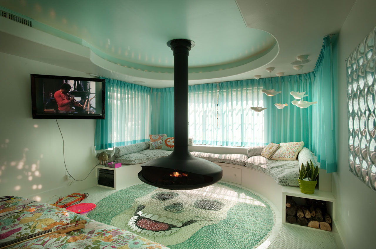 こちらの写真も中央部分に暖炉仕様ですね。まるでたき火のようです。