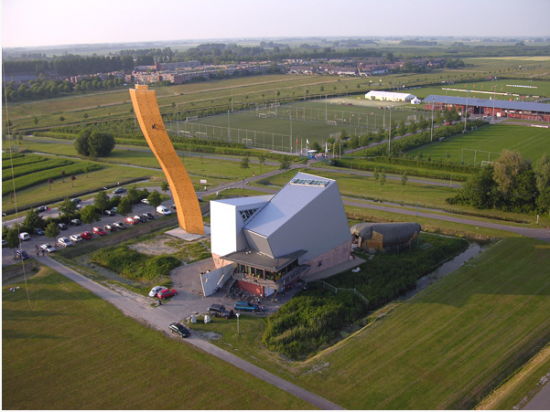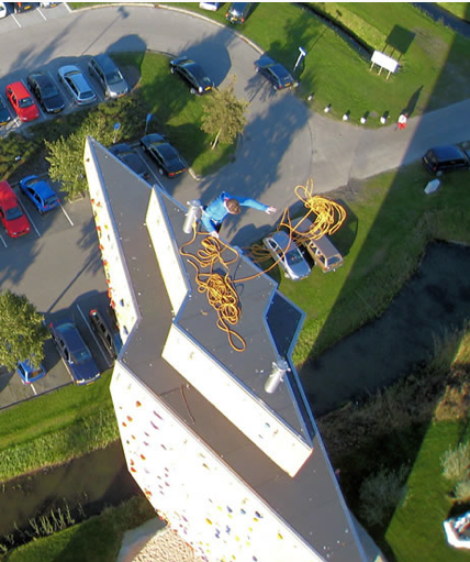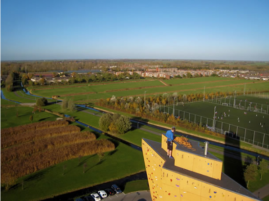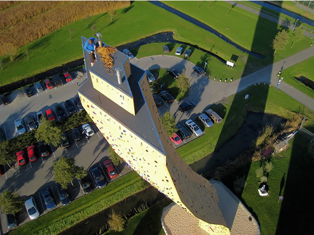 写真右側にあるの四角い建物が、オランダにある世界一の高さを誇るクライミング施設「エクスカリバータワー」を保有している「Bjoeks」です。