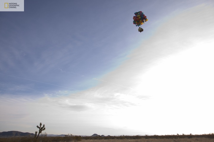 そんな空飛ぶ家を実際に実現してしまったのは、ナショナルジオグラフィックとその技術者たち。このプロジェクト自体もアメリカ人らしい非常に面白い発想だと思いますが、本当にこの家飛んじゃってます。
