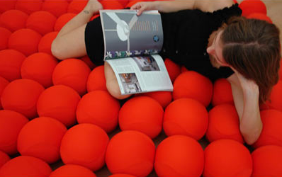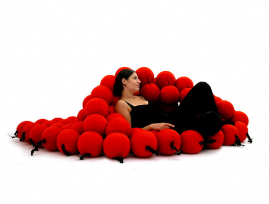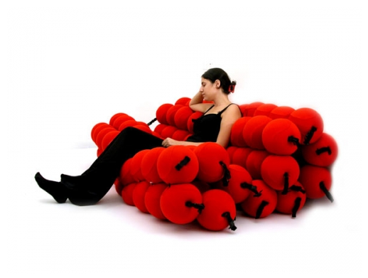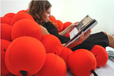 120個の柔らかいボールを数珠のようにつなげることで変幻自在な自由に形を変えることの出来るソファを生み出したみたいです。