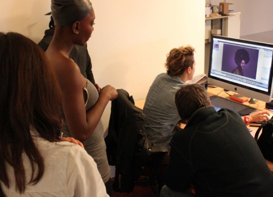 レゴブロック・ヘアーメイクアップ・アーティストたちはパソコンを使い最終的なひとつの作品をつくりあげます。