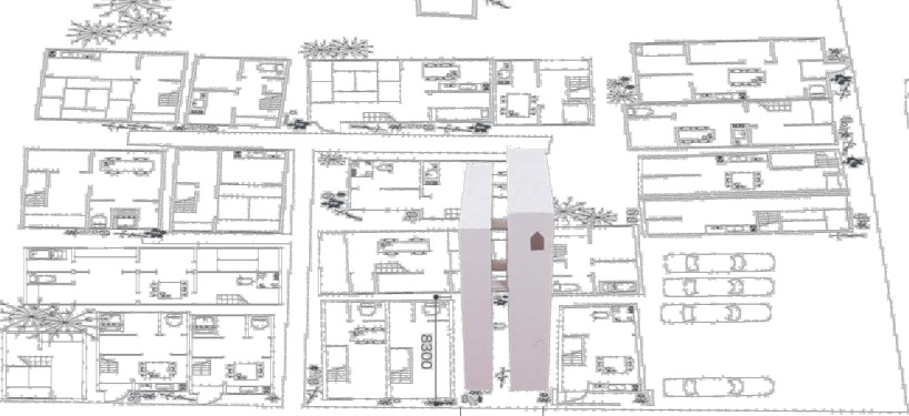 こちらが実際に狭小住宅が建てられる土地の周辺地図です。真ん中にそびえ立っている灰色の建物が今回紹介する狭小住宅です。 周りの家屋と比べても狭小ということが確認できるかと思います。