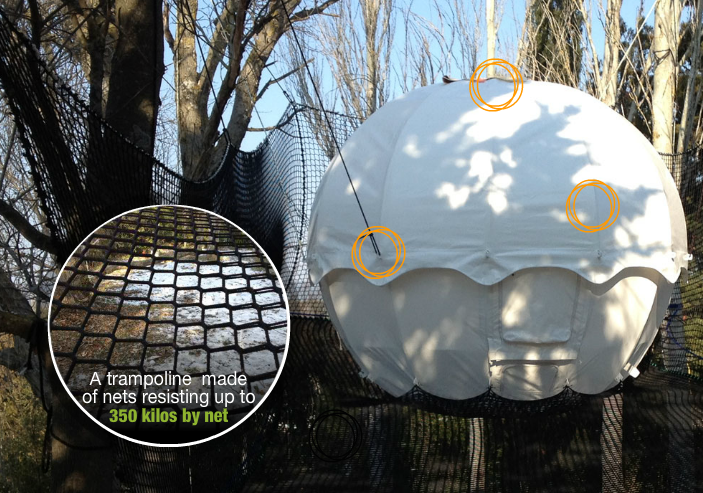 COCOON TREE(コクーンツリー)球体本体だけでなく、球体の下にこのようにネットをはることにより、落下防止や乗り降りが楽になります。