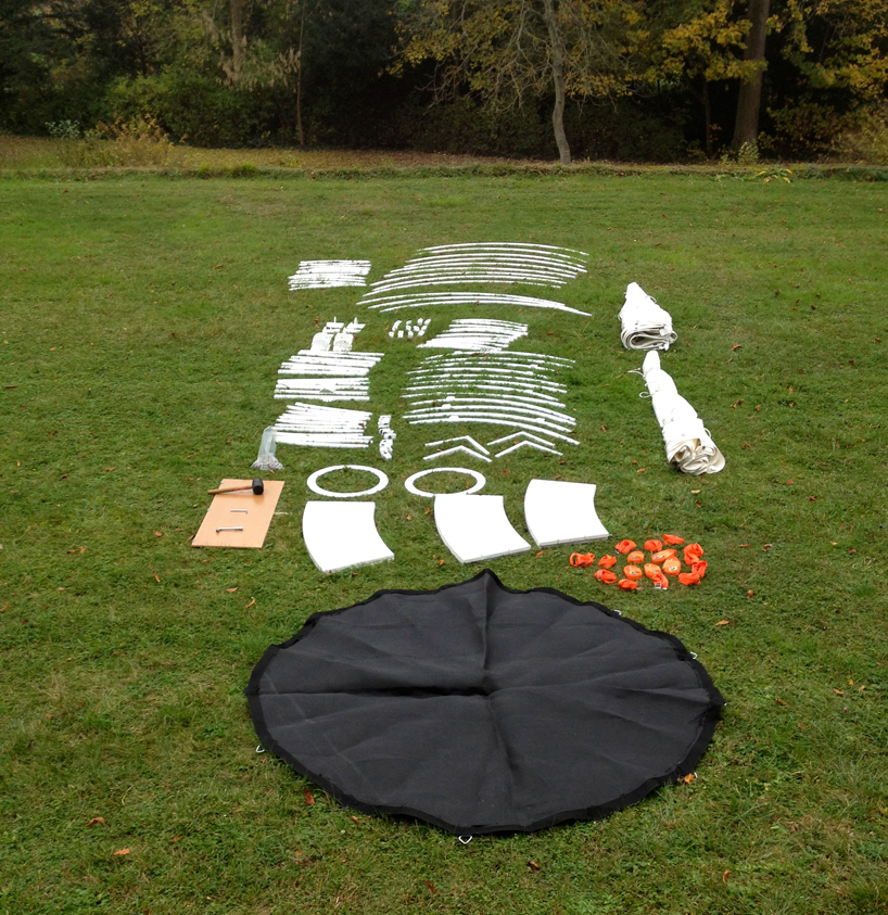 一般的なテントは、三角の形をしておりますが、今回ご紹介するテントは球体で、直径3メートル。大人二人でも快適にテントの中に寝そべることができます。