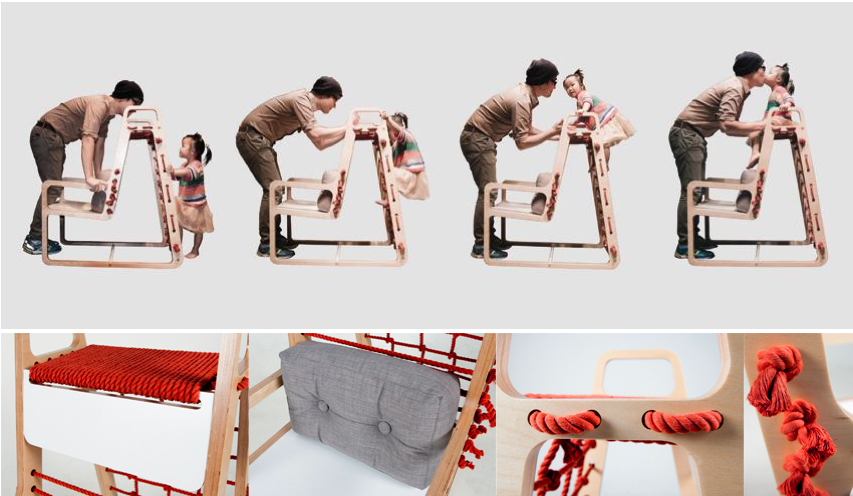 韓国人デザイナーのjaewook kimはそんな子供の頃の思い出を思い返し、お父さんが、椅子に座りながらも、肩車が出来る椅子をデザインしました。