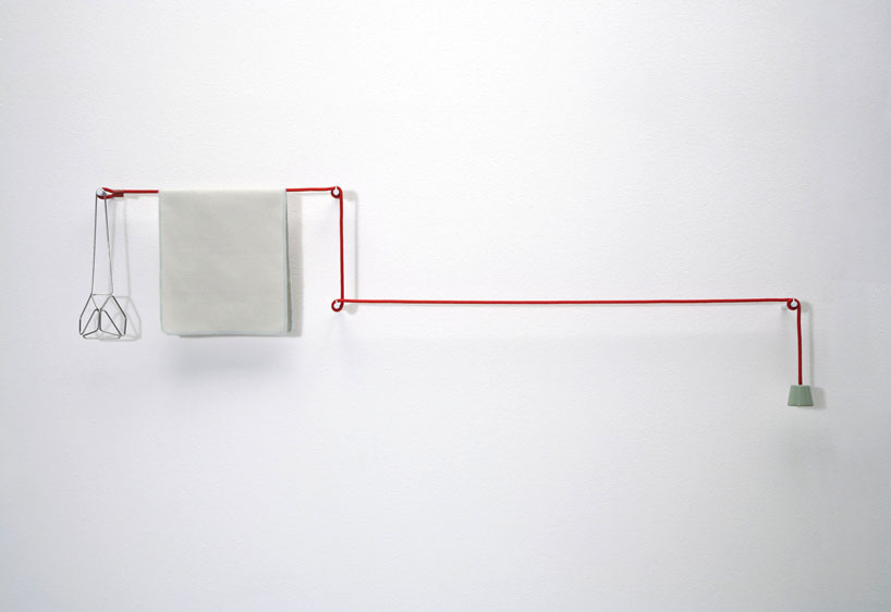 ‘towel hanger’と名付けられたこの作品は、壁に打ち込んだ杭をロープで繋ぐだけと言う非常にシンプルな作品ですが、そのシンプルさの中に、アイデアが光る作品となっています。