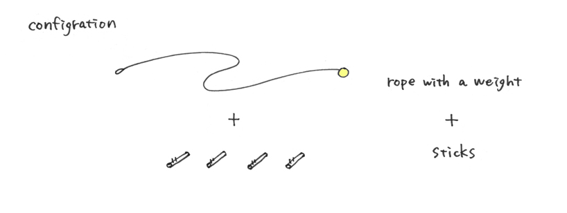 片方のロープの先を結び、もう片方のロープの先におもりをつけることで、バランスをとります。