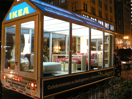 こちらはIKEAの広告。トラックの荷台に、IKEAの製品によってガラスケースの中にディスプレイされています。