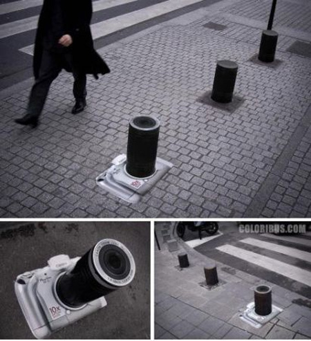 キャノンのカメラの広告。ポールがカメラの 望遠レンズになっています。