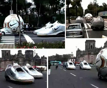 ナイキのサッカーボールを、ナイキの靴が追いかけています。これも面白い広告ですね。