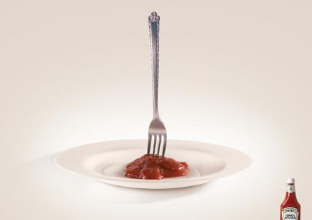Heinzの広告です。ケチャップの上にフォークが立っています。Heinzの鮮度をあらわしているのでしょうか。