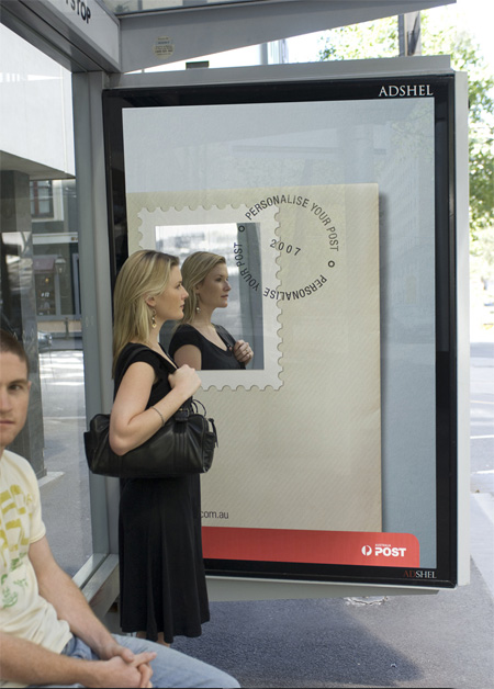 オーストラリアポストの広告です。ポストの中の鏡が反射して切手になっています。面白いですね。
