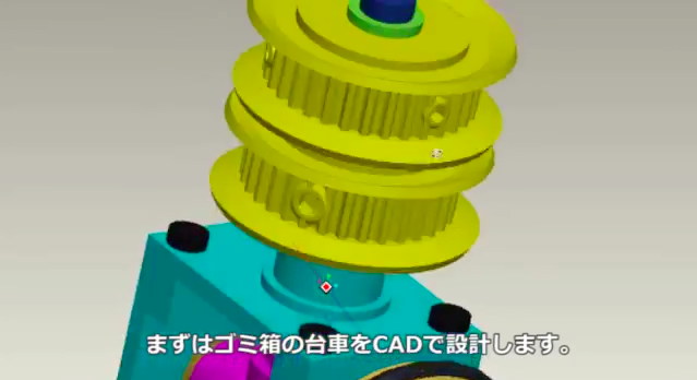 「まずはゴミ箱の台車をCADで設計します」