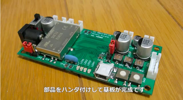「部品をハンダ付けして基盤が完成です」