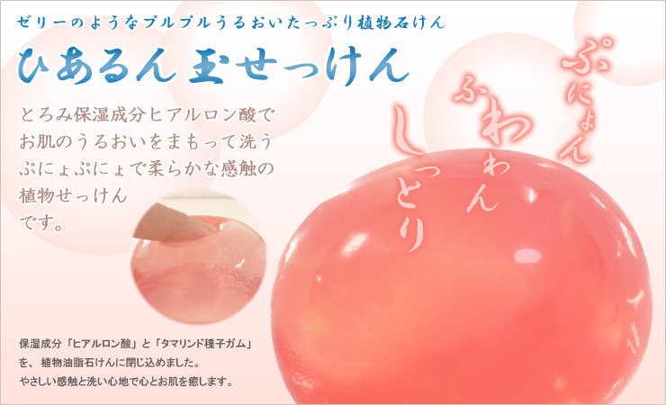 ・ひあるん玉はゼリーのようなぷるぷるうるおい植物せっけんです乾燥が気になる方から赤ちゃんまで幅広くお使いいただけます|みやびコスメティックスオンラインショップ