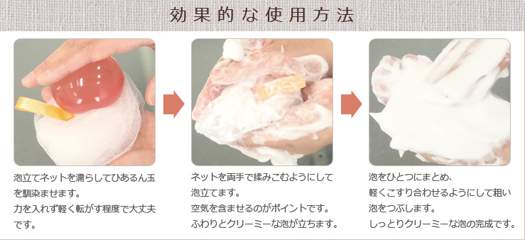 主に美容液などに使われ、石けんのようなものに使われることはなかったそうですが、ゴツゴツとした手触りをやさしいものにできればいい、という考えからこのひあるん玉が生まれたました。