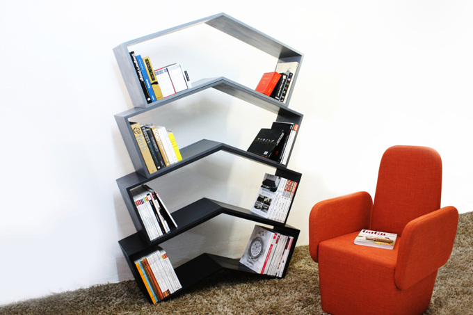 ・Angle-Mirrored Bookcases – The Lean Book Shelf by Monocomplex Sports an Ombre Color Palette (GALLERY)