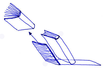 実はポールさん、Invisible Bookend(目に見えない本立て)のネタばらしは公表しておりません。ただ、公式ページ上で材質がステンレスミラーである点や、様々な情報を加味すると、おそらく以前紹介した壁に浮いている本と同じような要領だと思われます。上の写真のように本立てが存在しており一番端にある本のブックカバーを挟み込む形式で本立てが成り立っていると思われます。