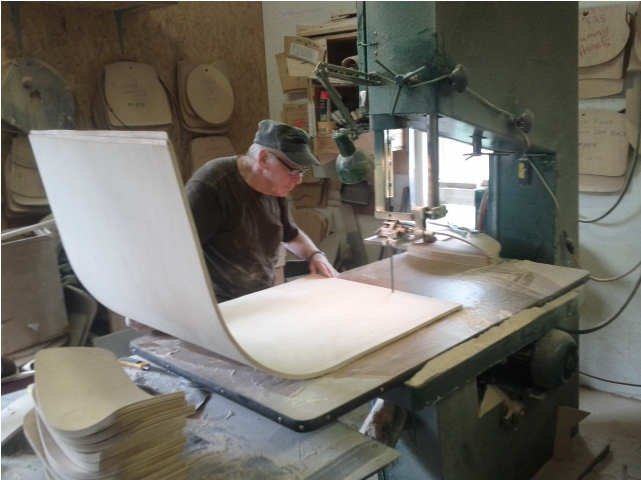 今まさに職人の手により制作されたBOOKSEATを真横から見た図です。素晴らしいデザインに魅了されてしまいそうです。