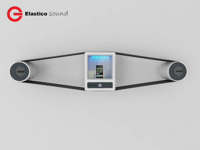 下の写真では右と左で違う色のスピーカーを設置しています。左右非対称の色にかえるだけで随分と印象がかわりますね。これも素晴らしい応用例です。