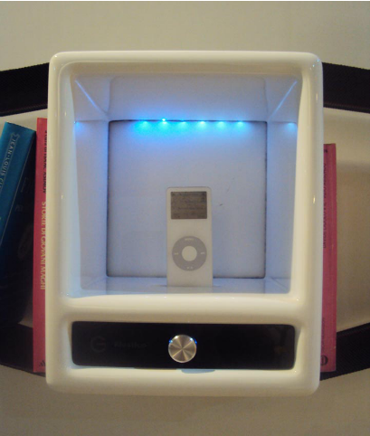 こちらは、丸ピンをスピーカーにかえてしまった応用例です。間に本ではなくコンポ本体を置いています。これはまた素晴らしいアイデアです。