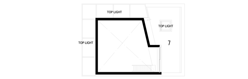 トップライトの光が漏れる階段をのぼりきると、高さ5.2メートルほどのボルダリングの壁があるリビングルームへとたどりつきます。