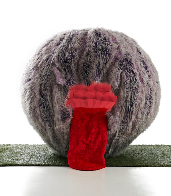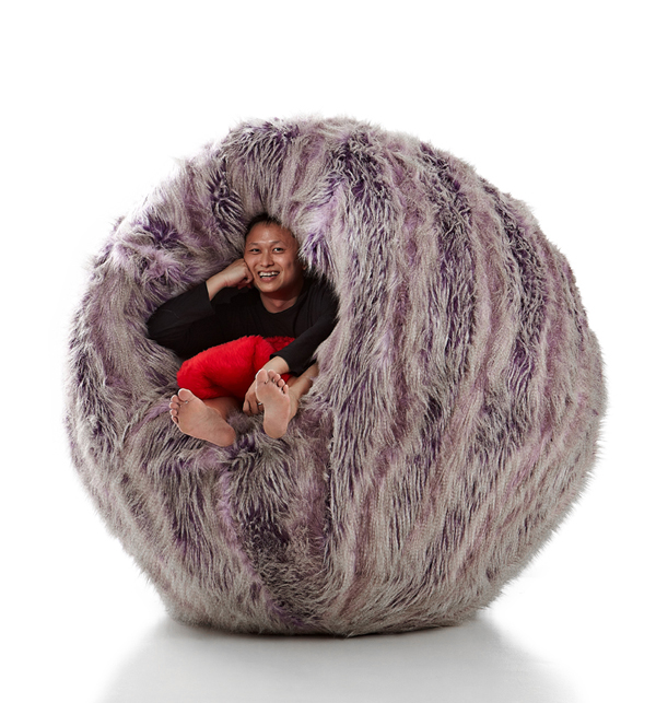 外は毛むくじゃら。だけど中はふかふか。遊び心が満載の椅子ですね。子供が喜びそうです。