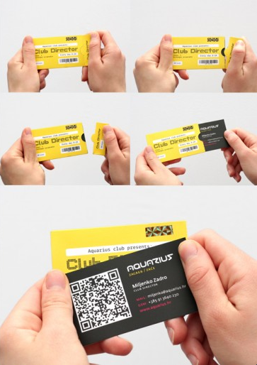 この名刺も非常にクリエイティブかつユニークです。この名刺、貰った人は一枚にくっつけないと読めなくなっています。