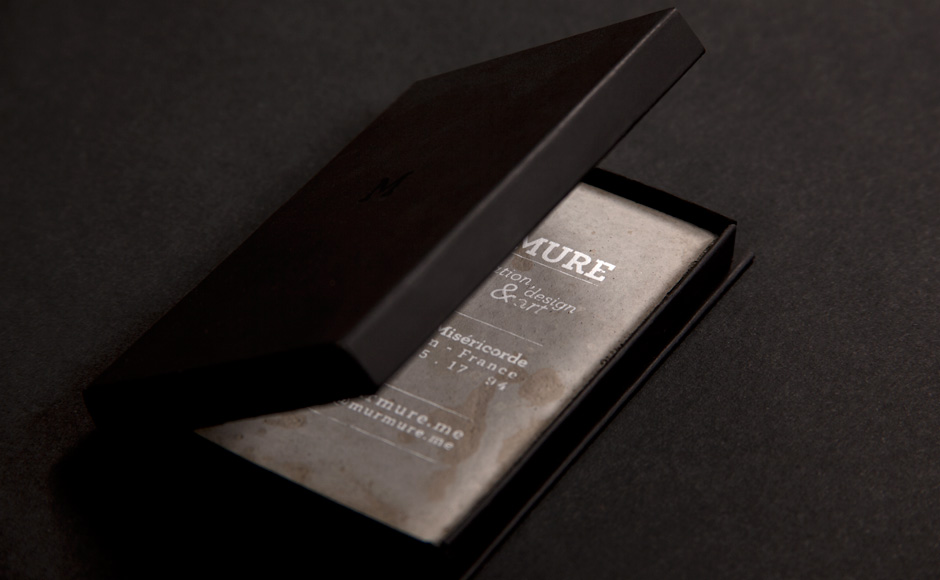 じゃん!実はコンクリートで出来た名刺です。「MURMURE」の「M」の文字が浮き出ています。