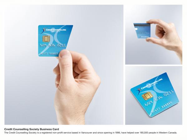 クレジットカードにはさみを入れたかのような名刺です。こんな名刺をもらうとちょっと複雑な気持ちになってしまうかもしれません。