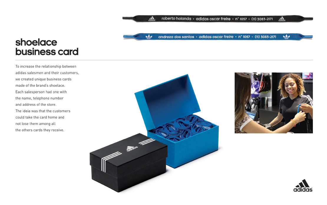 こちらはアディダスの名刺です。なんと靴ひもが名刺になってしまっています。実用的で貰った人も嬉しい名刺ですね。