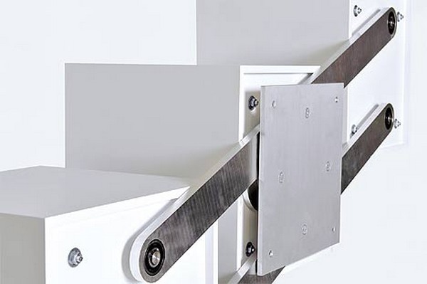 中央の本棚のまわりを左右の本棚が、観覧車のようにぐるぐると回転しているのがよくわかります。いったいどのような仕組みで動いているのでしょうか。
