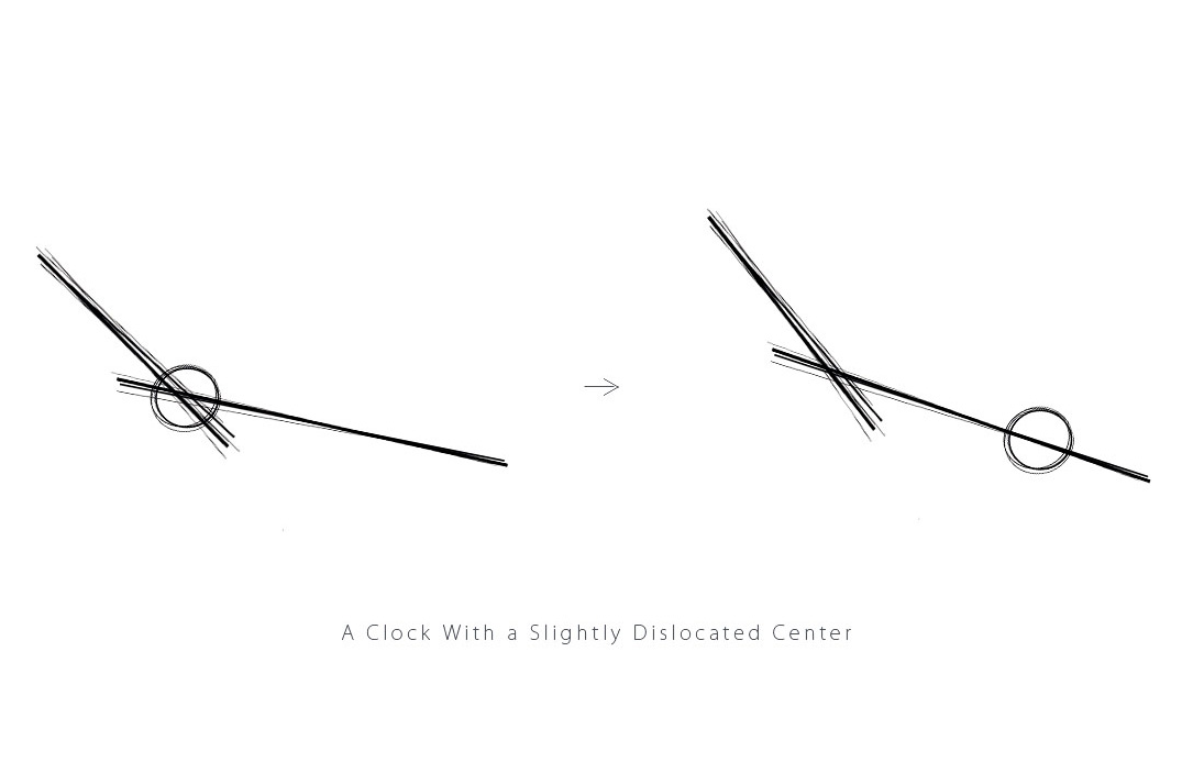 こちらはDislocation Clockのラフスケッチです。2つの線が折り重なる中心部を右にずらしただけということを意味しています。