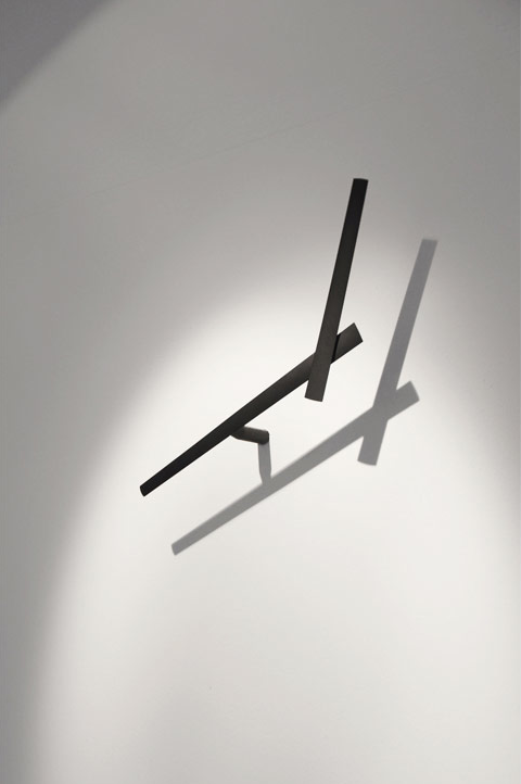 今度は先端の針が直角になっています。勘のいいあなたならもうお気づきですね。実はこの針、先端の短い部分が「時針」になっており、壁に直接繋がれた、長い針が「分針」となっています。