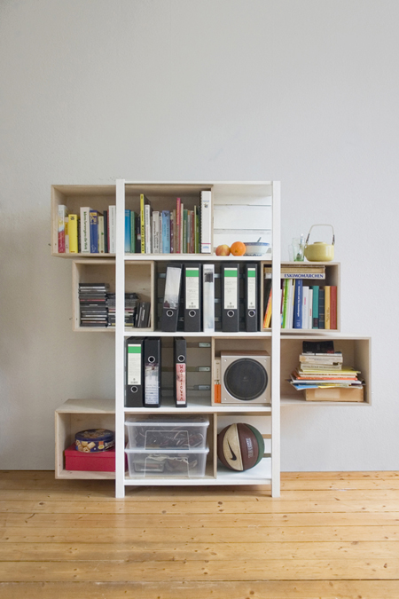 こちらが噂の本棚 「Growing Cabinet」です。何の変哲もない本棚ですが、容量が増えると大変身します。