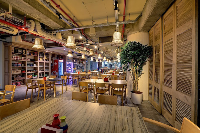 こちらはカフェテリア。床の模様としい、木の使い方と良い、細かいところにセンスが光っているスペースとなっています。