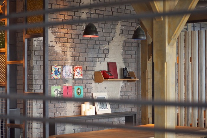 こちらはミーティングスペース。ヨーロピアンレトロな雰囲気溢れるスペースとなっています。様々なランプの壁紙も実にユニーク。どうやら左端の照明だけは本物のようです。