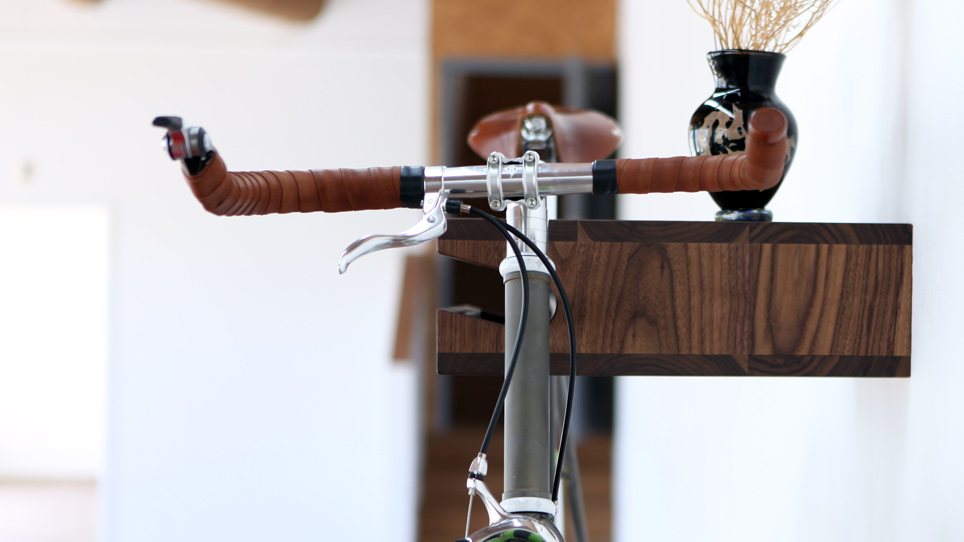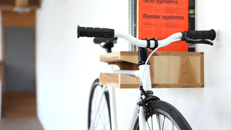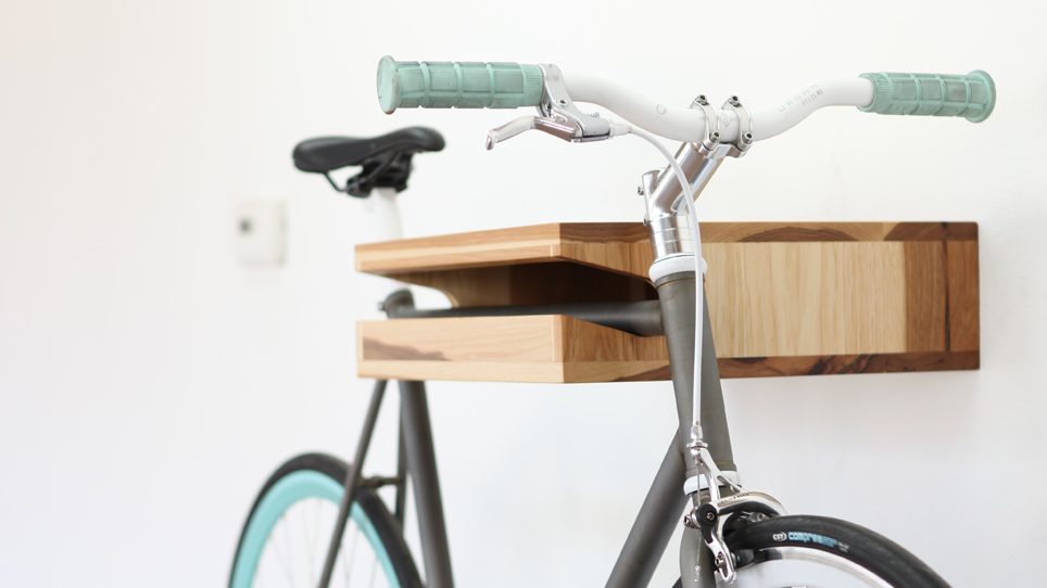 この自転車用の棚はサンフランシスコのグラフィックデザイナーChris Brigham(クリス・ベリガン)によってデザインされ、ひとつひとつ手作りによってつくられています。