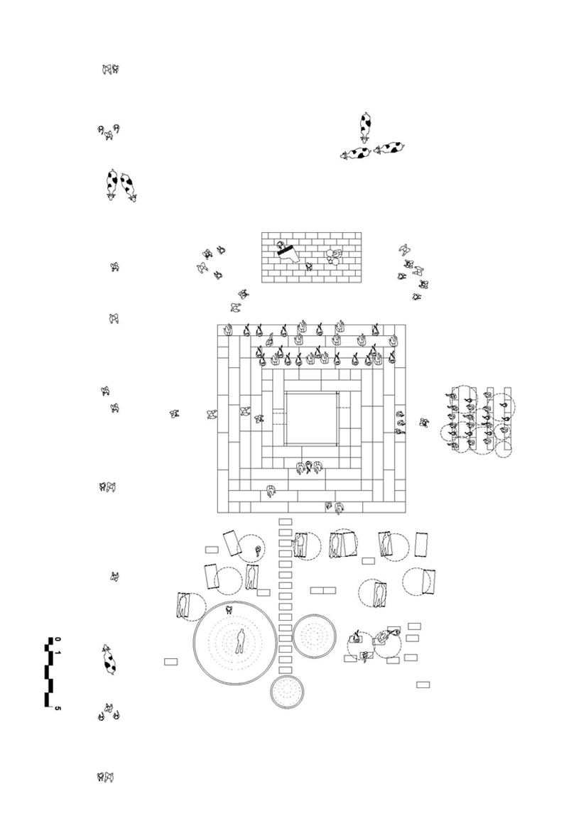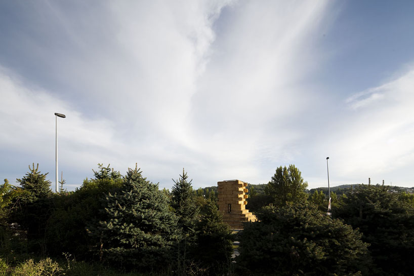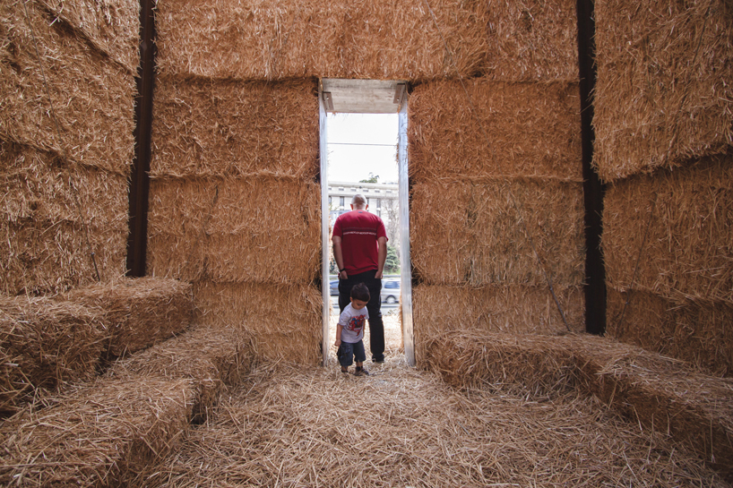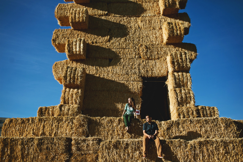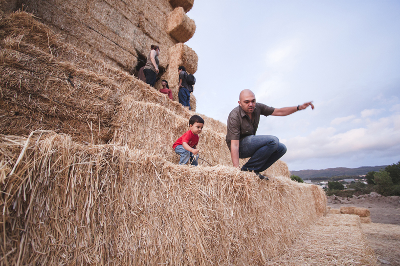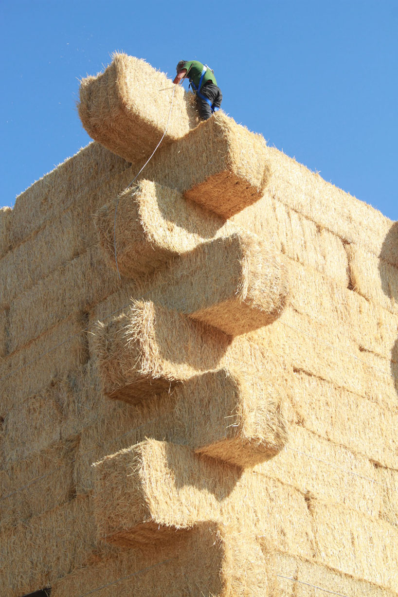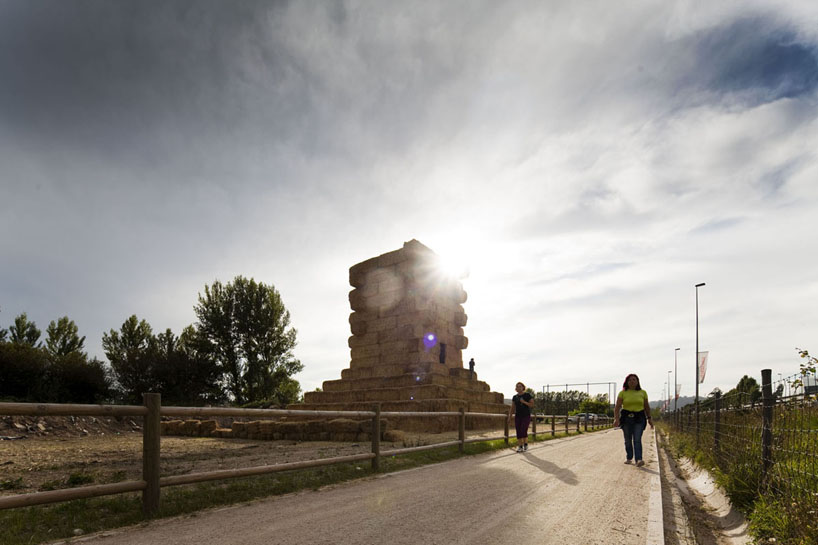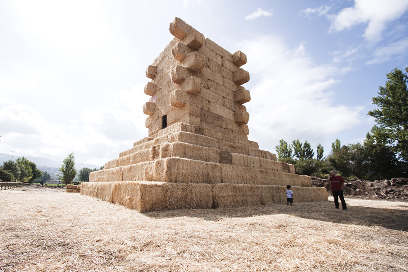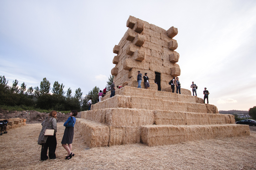 なんでも、素材を研究する為にスペインとポルトガルの農場を訪れたのだとか。イベリアの農場ではわら俵で出来た山が普通にみることができたようで、それに改良を加え今回のピラミッド型の建造物が出来たそう。
