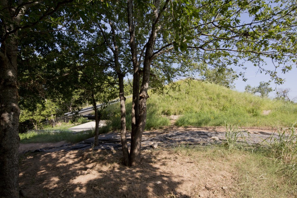 もっこりと隆起したこの地面。実はこれが他でもない「Edgeland House」。今ご覧頂いている部分はちょうど屋根の部分に当たります。