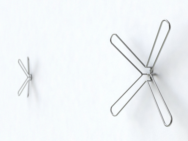 しかもこの作品、形を「▲(三角)」から「X(エックス)」に変えることにより、ハンガーとしての機能だけではなく、帽子などをひっかけるフックとしての機能も兼ね備えるという一石二鳥のデザインとなっています。