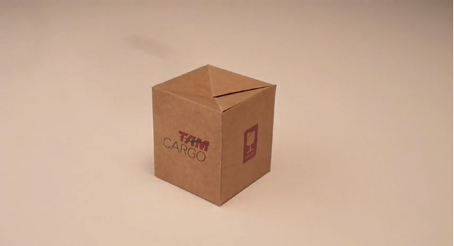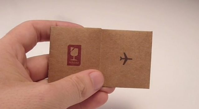 貨物輸送の箱になってしまいました。形状を利用した見事なつくりの名刺です。箱になる様子の動画は以下からご覧頂けます。