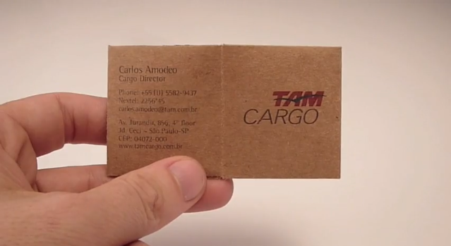 貨物輸送のTam Cargoの名刺。一見普通の名刺ですが、どんな秘密があるのでしょうか。