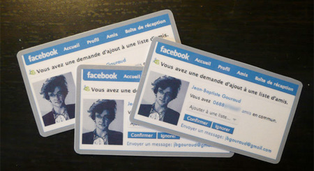 フェイスブックにインスパイアされて出来た名刺です。名刺自体がフェイスブックのページになっているという面白い名刺となっています。