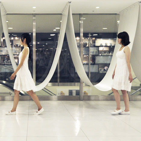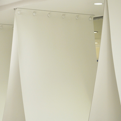 細長いシートを天井から吊るしただけの作品なので非常にシンプルな形態をしています。