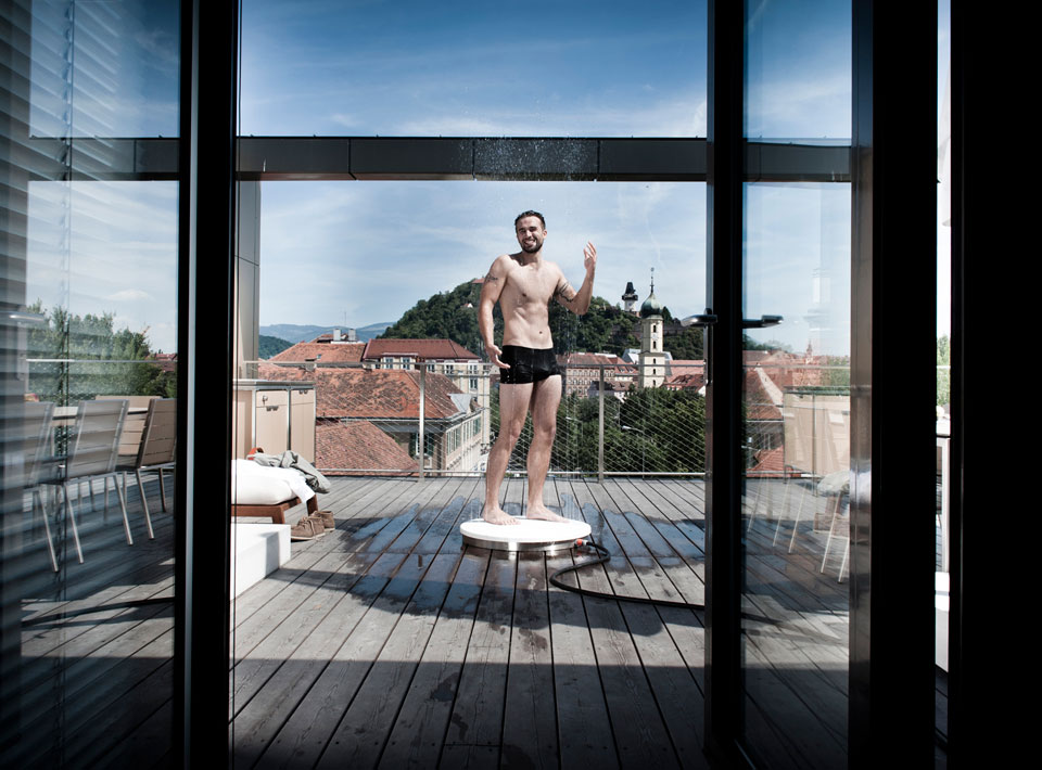 この下から吹き上げるタイプのシャワーはベルギーのデザイナーDanny Venletさんによってデザインされました。