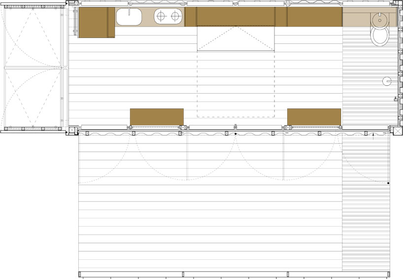 こちらはコンテナハウス「port-a-bach」の見取り図です。かなり広いつくりとなっています。